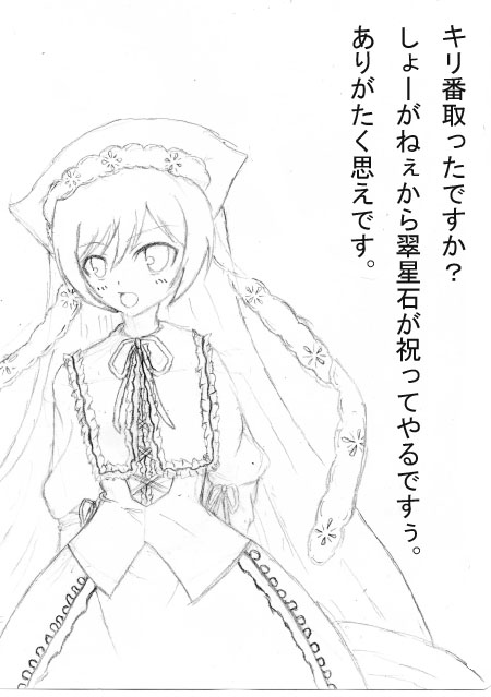 ってわけで500Hitしました。上はキリ番を踏まれた桜晶さんからのリクエストで、ローゼンメイデンより翠星石です。