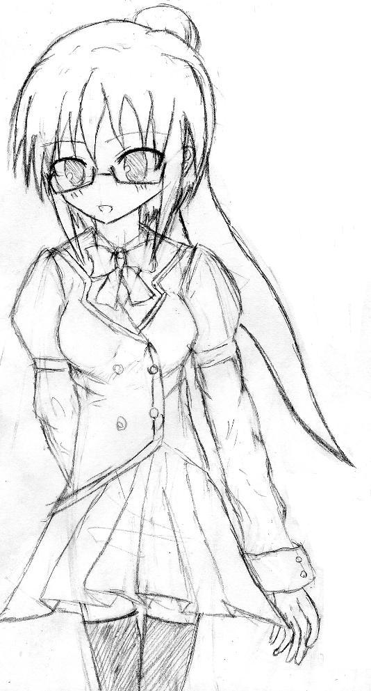 や、単にメガネ+ポニテ+ニーソが描きたかっただけなんだけど…。